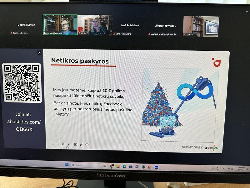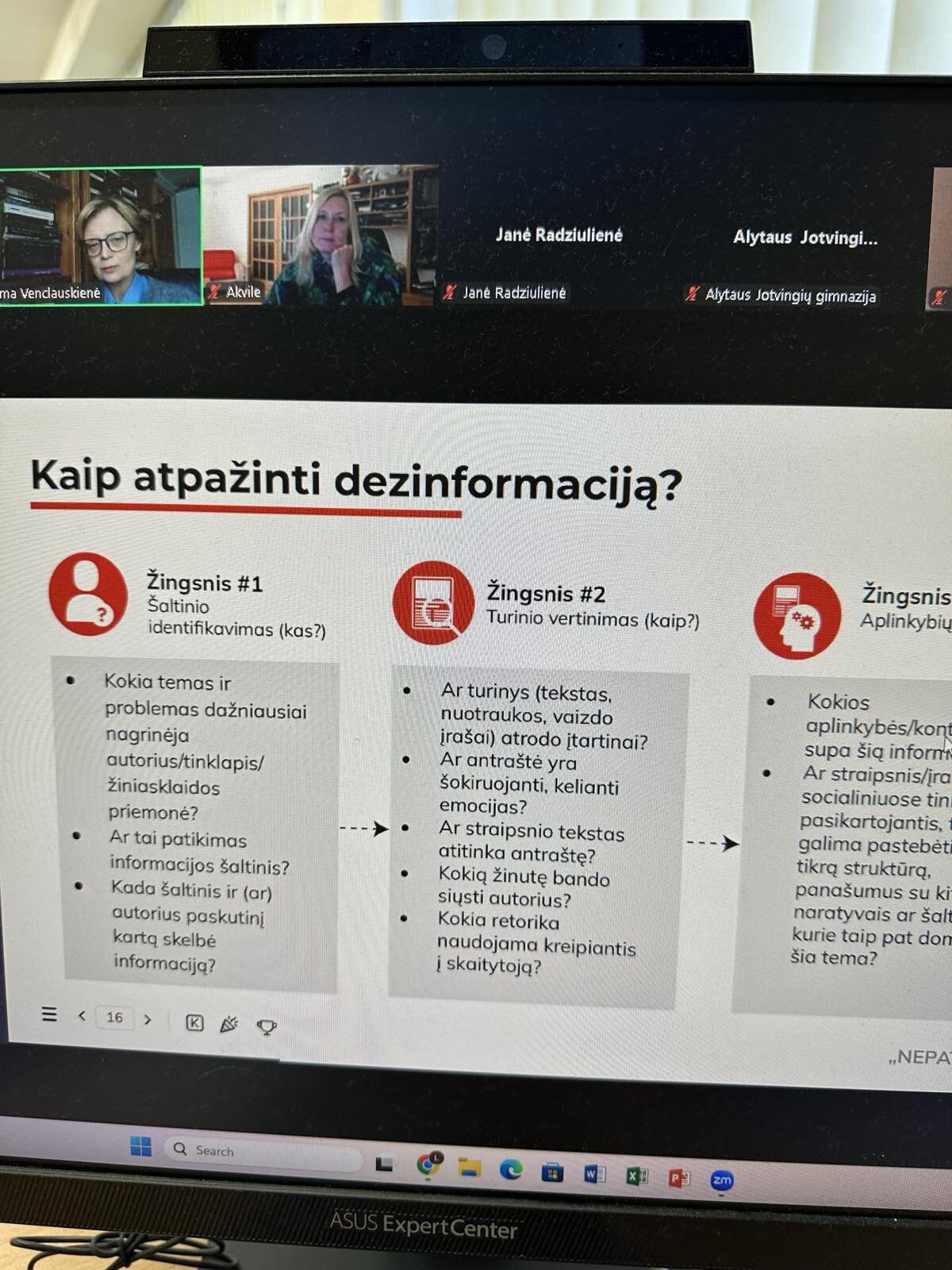 Spalio 24d. dieną gimnazistai dalyvavo ir interaktyviose dirbtuvėse apie dezinformaciją, kurių metu praktiškai mokėsi atpažinti netikras naujienas, patikrinti šaltinių patikimumą bei suprasti, kaip veikia informacijos sklaida internete.