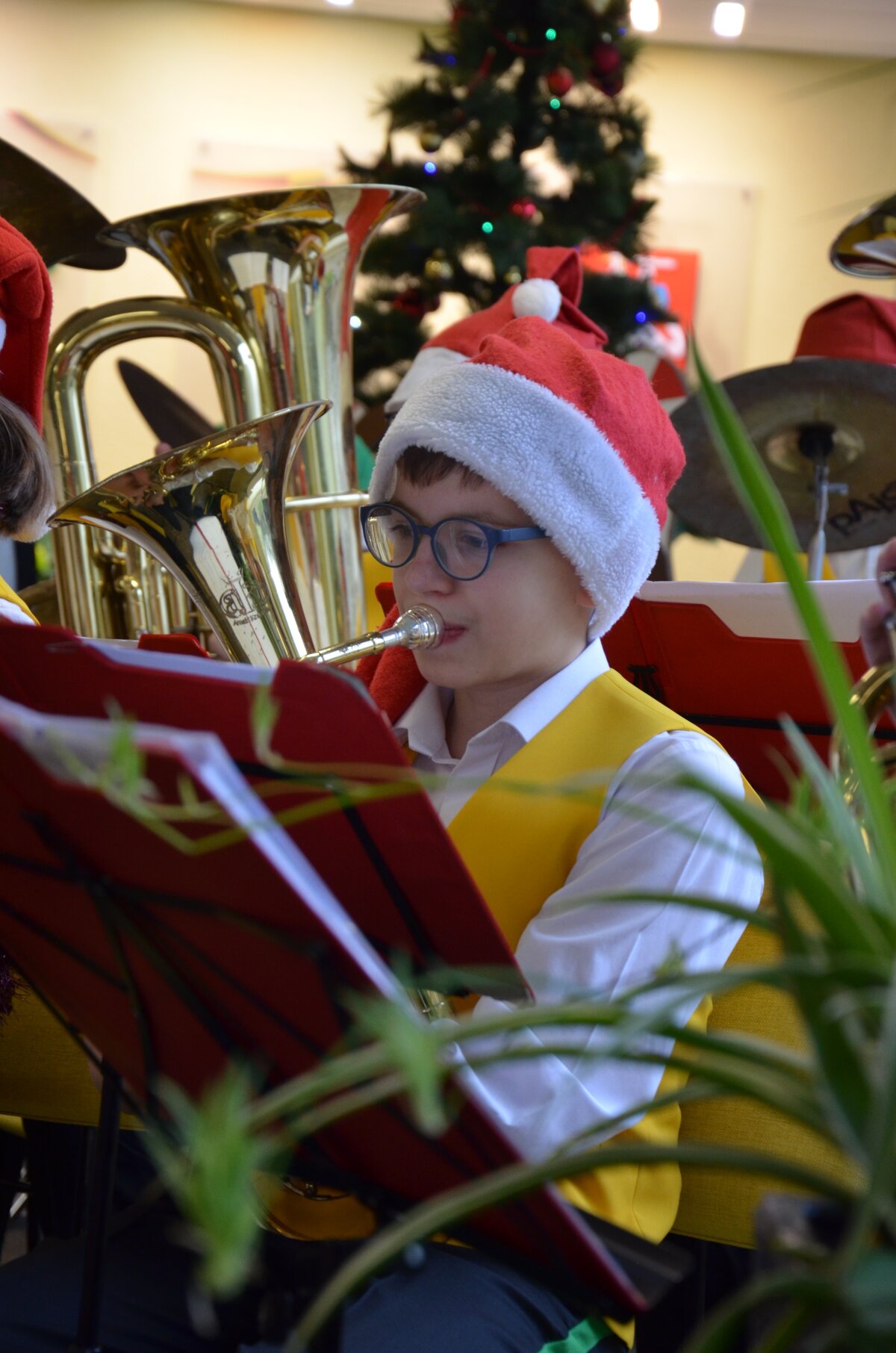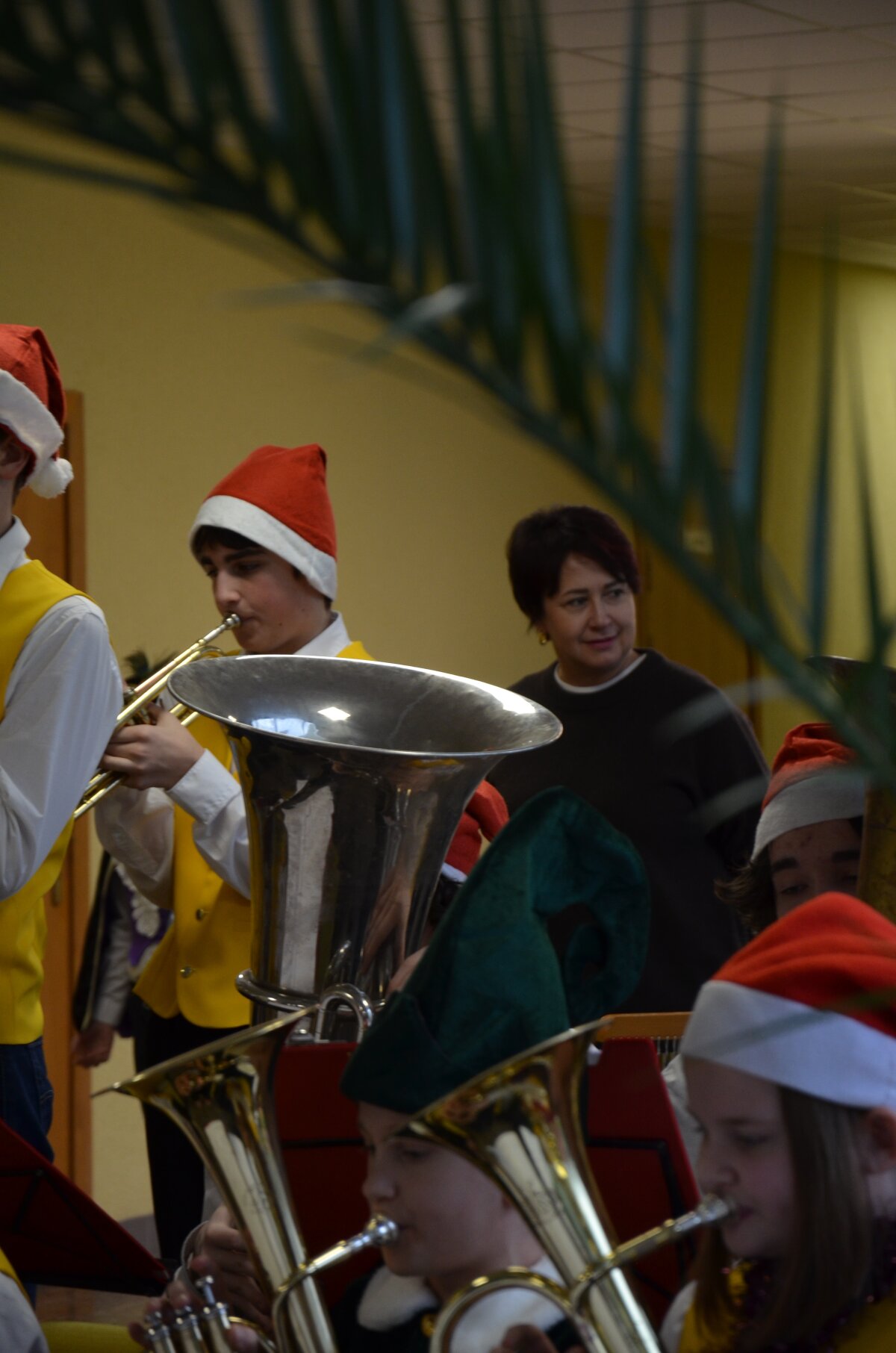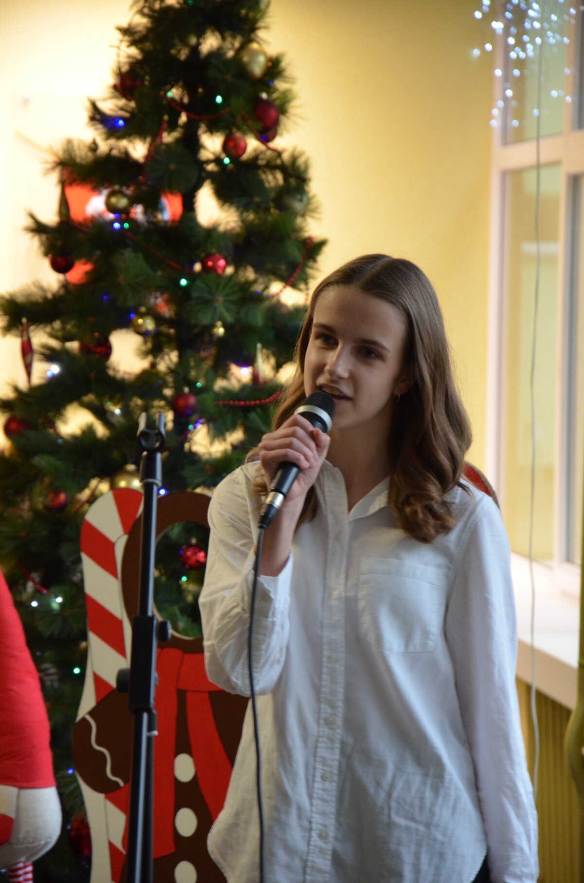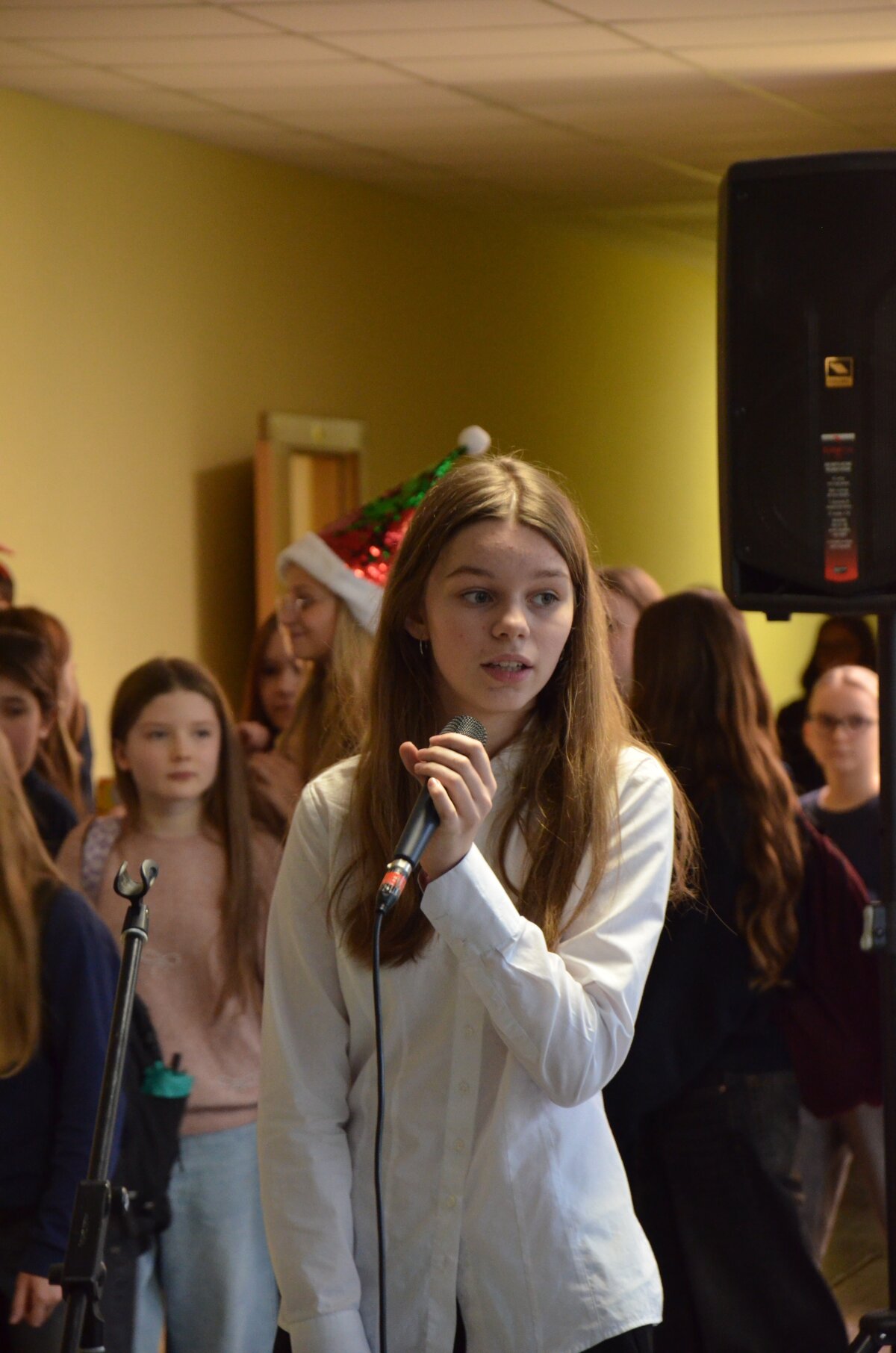 Per pertraukas gimnazijos koridoriai skambėjo vaikų juoku ir muzikos garsais – mokiniai džiaugsmingai šoko, dainavo ir grojo įvairiais instrumentais. Orkestras papildė šventinę nuotaiką, o kiti mokiniai aktyviai prisijungė prie muzikavimo, kuriant jaukią prieškalėdinę atmosferą.