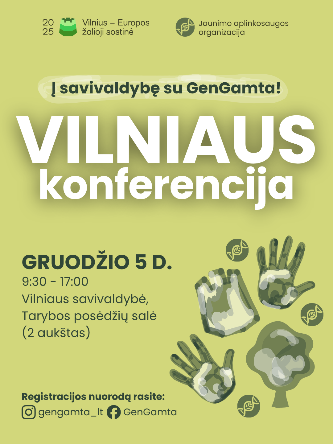 Vilniuje vyko jaunimo konferencija apie miesto tvarumą ir rekomendacijų rengimą Vilniaus miesto savivaldybei. Renginys buvo skirtas 15–25 m. jaunimui ir vyko 2025 m. gruodžio 5 d. Vilniaus m. savivaldybėje. Renginio metu dalyviai sužinojo daugiau apie miesto tvarumą, jo siekimo būdus ir parengė rekomendacijas Vilniaus miesto savivaldybei. Renginį organizavo GenGamta kartu su „Vilnius – Europos žalioji sostinė 2025“.