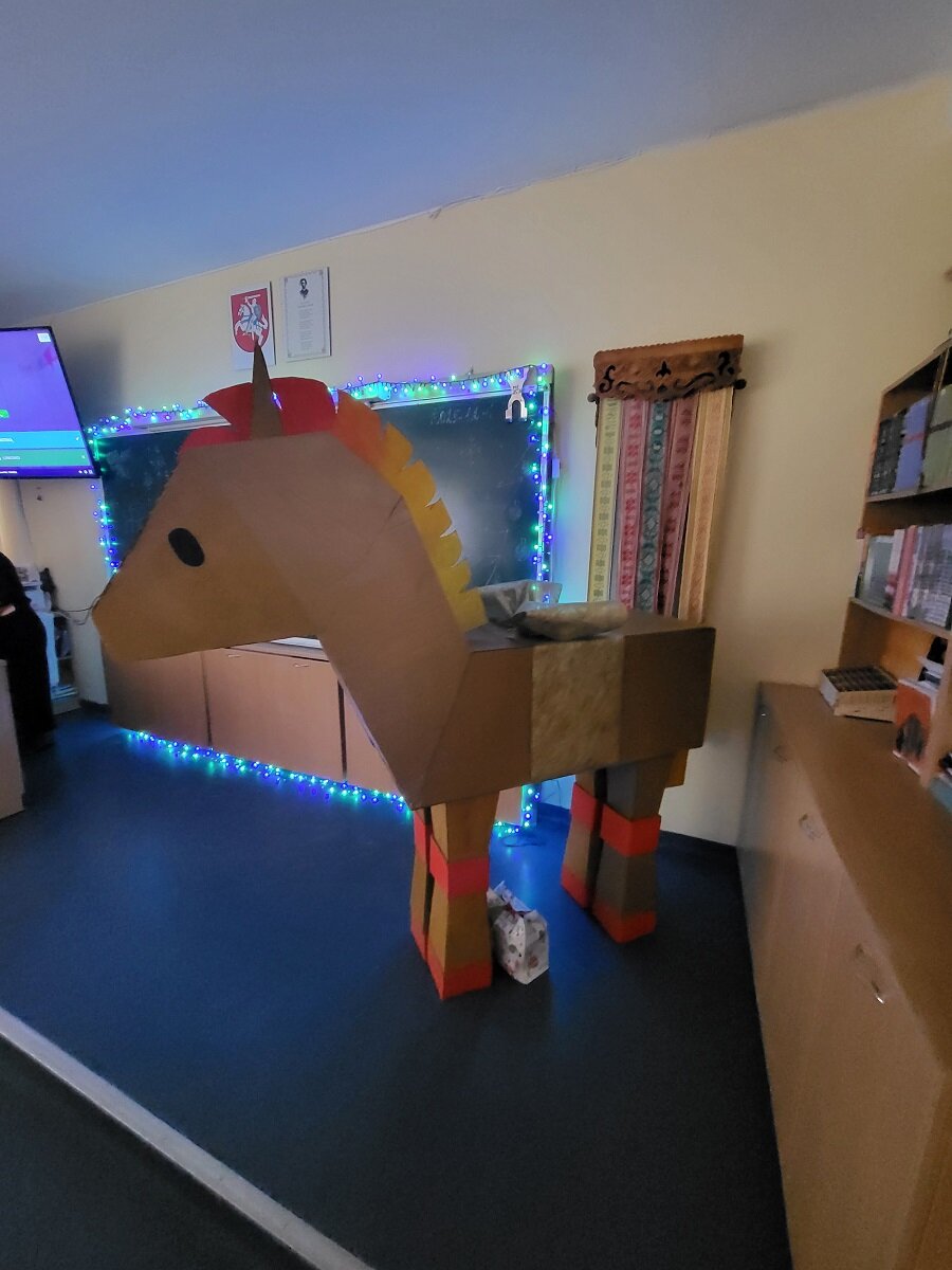 Pirmąsias dovanas į „Gilės namus“ nuvežė mūsų gimnazijos savanoriai. -