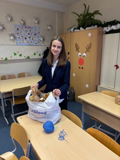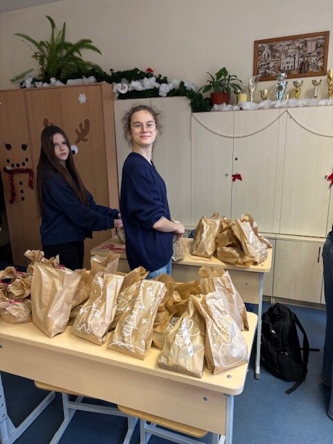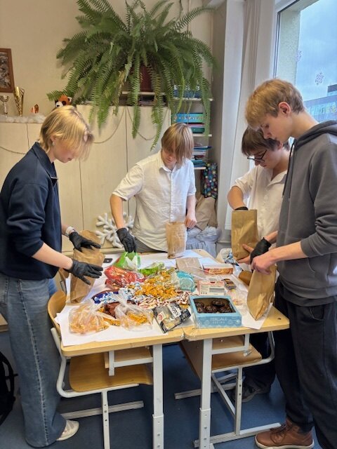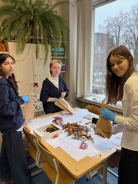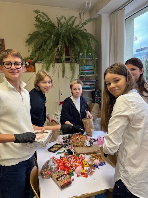 Mokinių ir jų tėvų dosnumo dėka savanoriai supakavo apie 400 saldžių dovanėlių: saldainių, sausainių, arbatos, zefyrų ir kt.. Šis darbas ne tik moko gerumo, bet ir lavina gyvenimo įgūdžius bei kompetencijas: sutvarkyti darbo vietą, apskaičiuoti kiekius, dalyti ir pakuoti maistą bei dirbti komandoje.