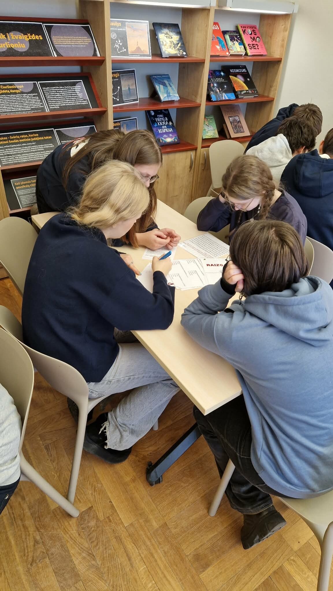 ,,Santaros“ gimnazijoje tęsiasi renginiai, skirti Lietuvių kalbos dienoms paminėti. Ta proga 9 f ir 9 b kl. mokiniai kartu su savo lietuvių kalbos mokytojomis lankėsi A.Mickevičiaus bibliotekoje ir dalyvavo edukacijoje ,,Raizgalynės“. Užsiėmimo metu mokiniai ne tik susipažino su biblioteka, bet ir sprendė įvairias užduotis bei išsiaiškino penkis įdomius faktus apie rašytojus.