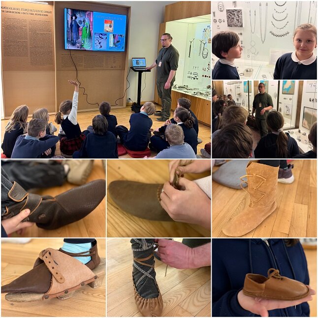 4B klasės moksleiviai lankėsi Lietuvos nacionaliniame muziejuje edukacinėje pamokoje „Apavas keliauja per epochas“. Jie susipažino su avalynės raida nuo akmens amžiaus iki šių laikų, sužinojo, kad avalynė ne tik saugojo kojas, bet ir atspindėjo žmogaus socialinę padėtį, gyvenimo būdą bei laikmečio technologijas.