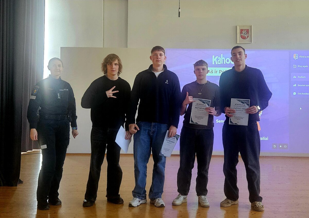 Vilniaus „Santaros“ gimnazijos 11 a kl. mokiniai dalyvavo konkurse „Aš ir policija“. Mokiniai išbandė savo žinias Kahoot viktorinoje, kurioje buvo klausimų apie pilietiškumą, administracinę atsakomybę, Lietuvos istoriją ir kitus svarbius dalykus. Tai buvo puiki proga pasitikrinti žinias, pagilinti supratimą apie atsakingą pilietišką elgesį ir smagiai praleisti laiką kartu.