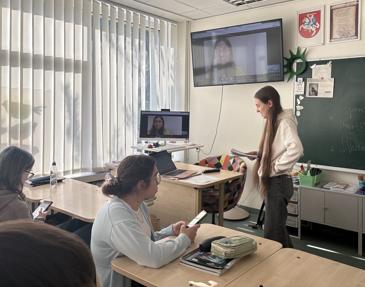 Projekto metu mūsų gimnazijos anglų klb. mokytoja Alla Juriavichene, Fulbright Teaching Excellence and Achievement Program 2024 programos alumnė, bendradarbiavo su Callie Chillik, Kent State universiteto integruotų socialinių studijų studente. Per keletą nuotolinių susitikimų jos aptarė Lietuvos ir Jungtinių Amerikos Valstijų švietimo sistemas, išsikėlė pamokos tikslus, aptarė galimus iššūkius ir kartu suplanavo pamoką 10 f klasės mokiniams.