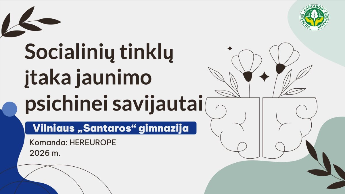 Vilniaus „Santaros“ gimnazijos komandos „HEREUROPE“ pristatymas „Socialinių tinklų įtaka jaunimo psichinei savijautai“