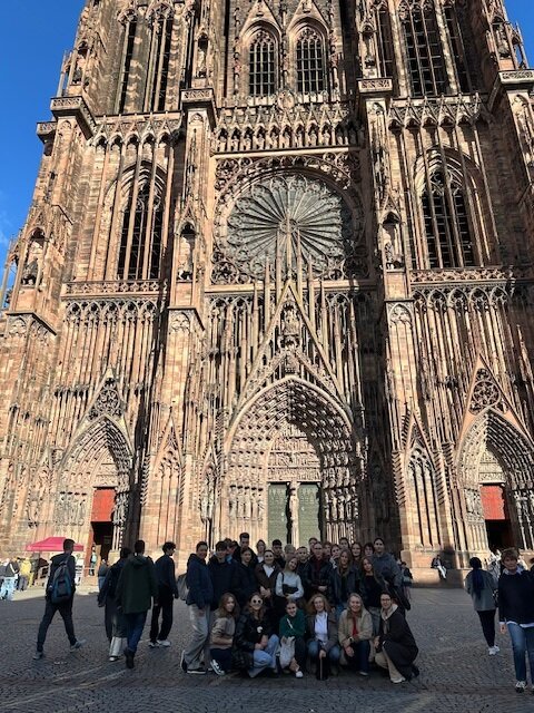 Pažintinė kelionė prasidėjo Prahoje (Čekija), kuri mus sužavėjo gotikine Karolio tilto ir senovinių gatvelių architektūra. Toliau maršrutas vedė per Strasbūrą, Elzaso sostinę, kurioje susipažinome su unikaliu prancūzų vokiečių kultūros paveldu, apžiūrėjome pagrindinius kultūros objektus, tokius kaip Katedra, taip pat paragavome nacionalinės virtuvės patiekalų, grožėjomės architektūra ir auksiniu rudeniu. Kitą dieną Strasbūre pasiekėme tikslą ir atvykome į Europos Parlamentą. Vėliau išvykome į Frankfurtą prie Maino. Jame apžiūrėjome šiuolaikinį Vokietijos finansų centrą. Kelionė baigėsi pasakiškame viduramžių miestelyje Rotenburge prie Tauberio, mieste, vadinamame viduramžių vokiečių muziejumi, kuriame išliko riterių laikų atmosfera.