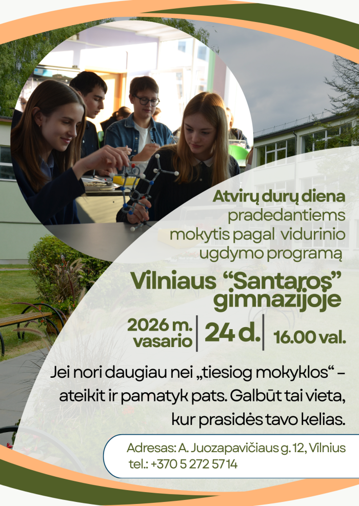 2025-2026 m. m. mokiniai į Vilniaus „Santaros“ gimnazijos 1-12 klases bus priima... -