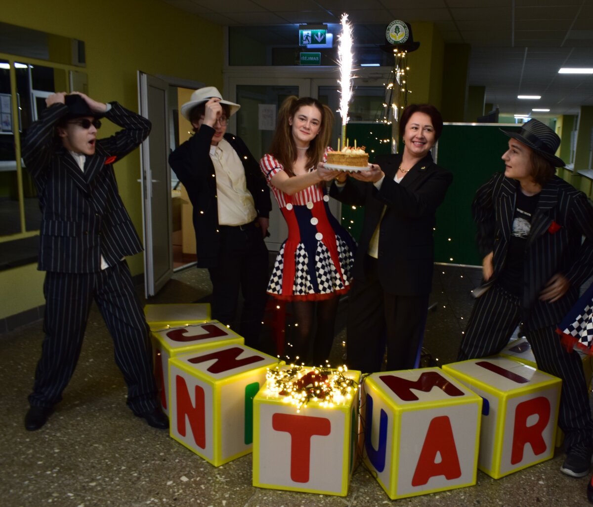 Gruodžio 4 d. gimnazija paminėjo savo 104-ąjį gimtadienį, kupiną šilumos ir bendrystės. Gimnazijos bendruomenę prie durų pasitiko orkestras, sukūręs iškilmingą ir džiaugsmingą nuotaiką, o teatralizuotas sutikimas visiems priminė ilgametes tradicijas. Muzikinės pertraukėlės koridorius užpildė šurmuliu ir gera nuotaiką. Ši diena dar kartą subūrė gimnazijos bendruomenę, primindama mums kiek daug esame nuveikę, ir kokie gražus darbai mūsų laukia. Su gimtadieniu!